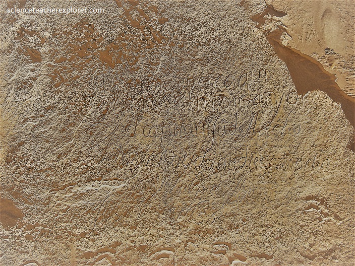 During the 1500s, Spanish explorers enslaved the Pueblo people in the American Southwest and tried to destroy their religious practices. In 1680, the Pueblos organized the first revolution against a foreign colonial power on American soil. Under the leadership of medicine man Popé (or Po’Pay), they successfully drove the Spaniards out of Pueblo territory back into Mexico in a surprise attack. The inscription below shows a signature dated before the revolt. The oldest documented signature belongs to Don Juan de Onate, wh dated his message “16 April 1605,” although some of the Native American petroglyphs pre-date this.