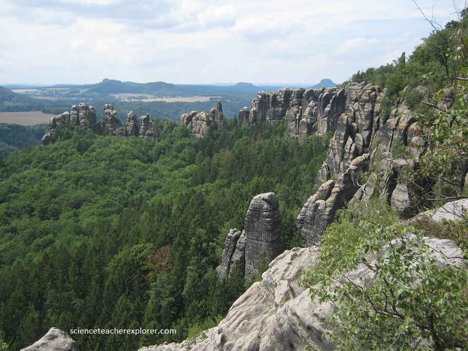 The Elbe-Sandstone form a series of bizarre promontories jutting up from the verdant forests that straddle the magnificent River Elbe.