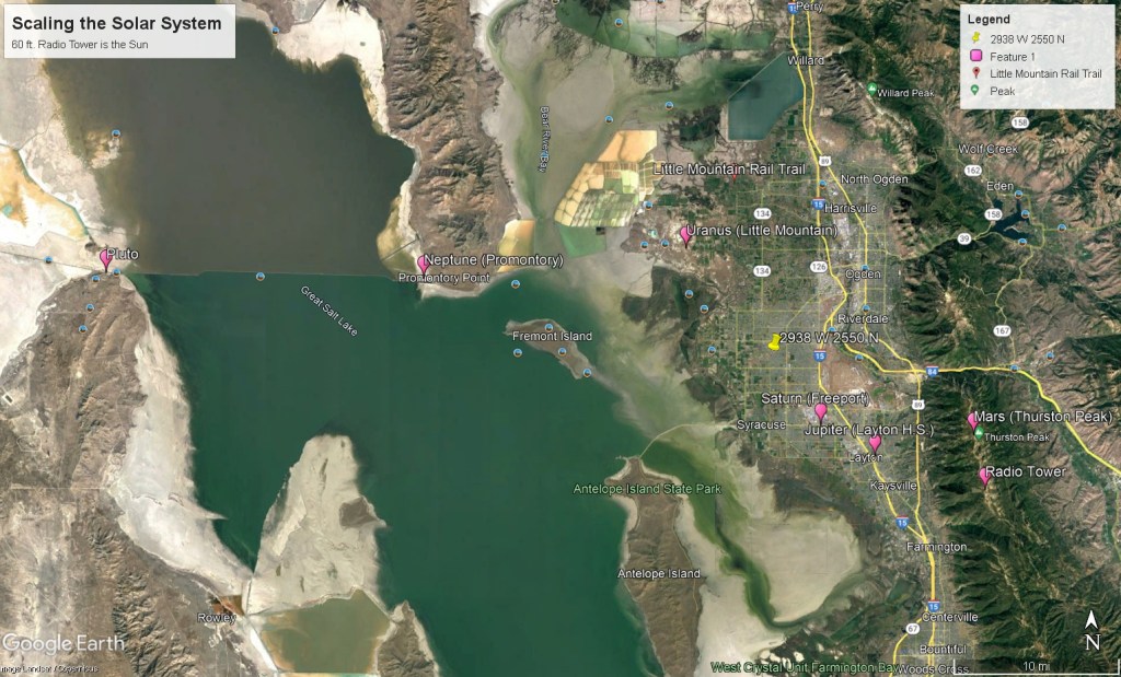 Using the 60 foot Radio Tower on Francis Peak, I decided to use it as a tool to scale out the Solar System across the Great Salt Lake viaduct. The educational video below is my attempt to accomplish this.