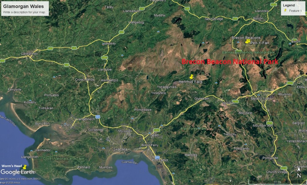 The three geo-sites I explored, were the Brecon-Beacons National Park, Henrhyd Falls, and Worm’s Head on the Gower Peninsula, (imaged below).