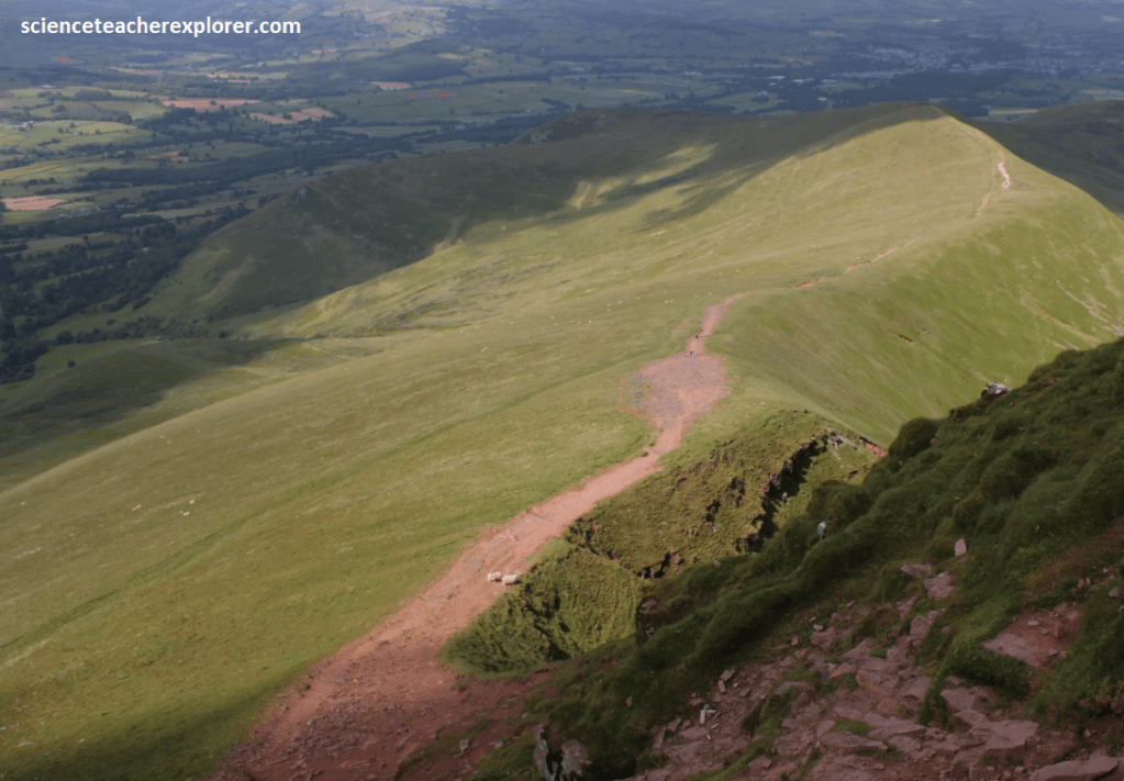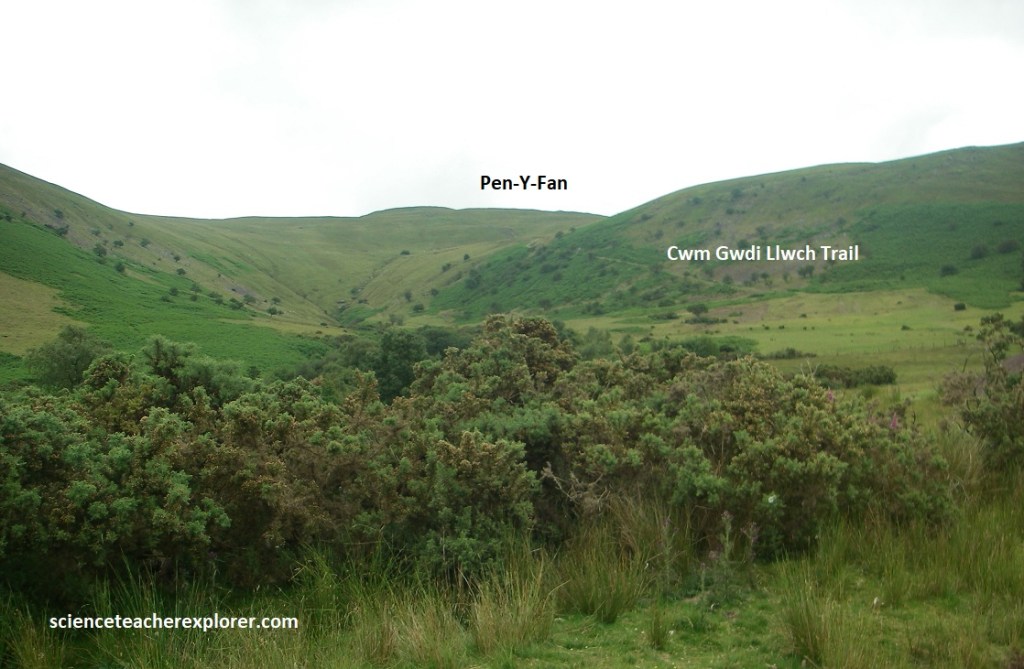 Pictured above, the Cefn Cwm-Llwch trail gets rather steep near the top. The Pen-y-Fan Formation cap the summits of Pen y Fan and Corn Du. They are resistant to erosion, creating the iconic “flat-topped” or anvil-shaped profiles of the peaks. The trail’s bedrock consists entirely of red sedimentary rocks were deposited during the Devonian period (approximately 419 to 359 million years ago). However, the dramatic physical features of the Cefn Cwm-Llwch area were sculpted by glaciers during the Quaternary period, particularly during the last glaciation that ended roughly 11,700 years ago.