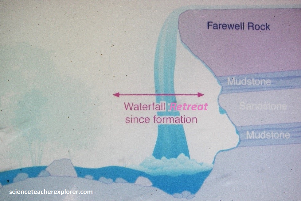 Below the Farewell Rock, the waterfall plunges onto softer strata, specifically the Subcrenatum Sandstone, which contributes to the recessed, undercut nature of the cliff face. The rocks here are of Late Carboniferous (Pennsylvanian) age, roughly 323–299 million years old.