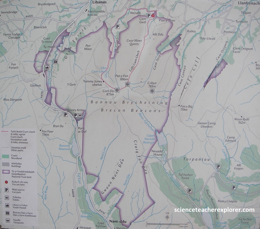 My goal was to trek to the top of the Pen-Y-Fan Peak from the parking lot, using the Cefn Cwm-Llwch trail, (pictured below).