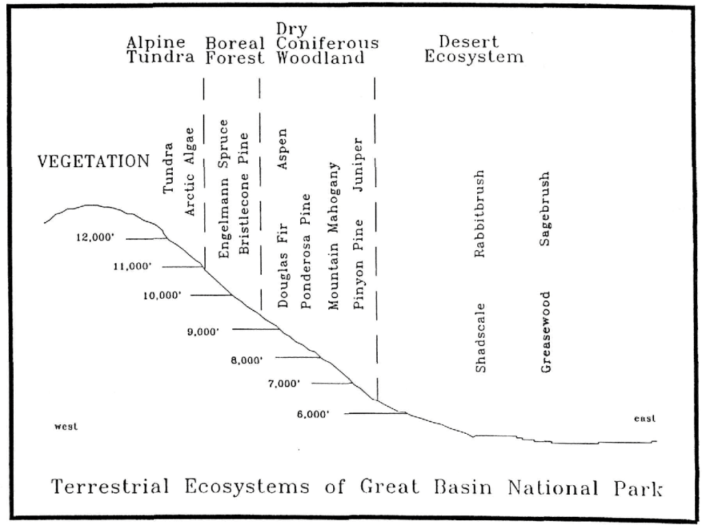 Imaged above, Great Basin National Park encompasses 6 distinct climatic zones, each supporting a unique community of plants and animals. As we drove the scenic road toward the Wheeler Peak trailhead, we passed through a series of climate zones, each reflected in the prevailing plant community.