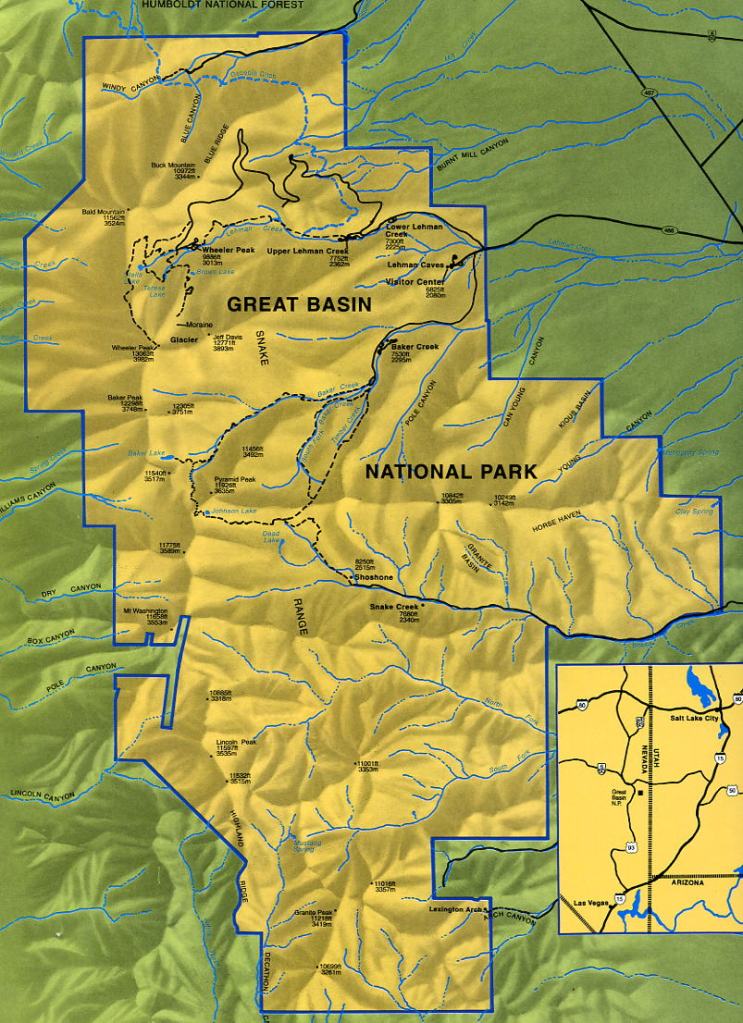 The Great Basin National Park and the Snake Range of eastern Nevada, are part of what scientists call the “Great Basin”. The Great Basin makes up about half of what is known as the “Basin and Range Province” of the western USA.