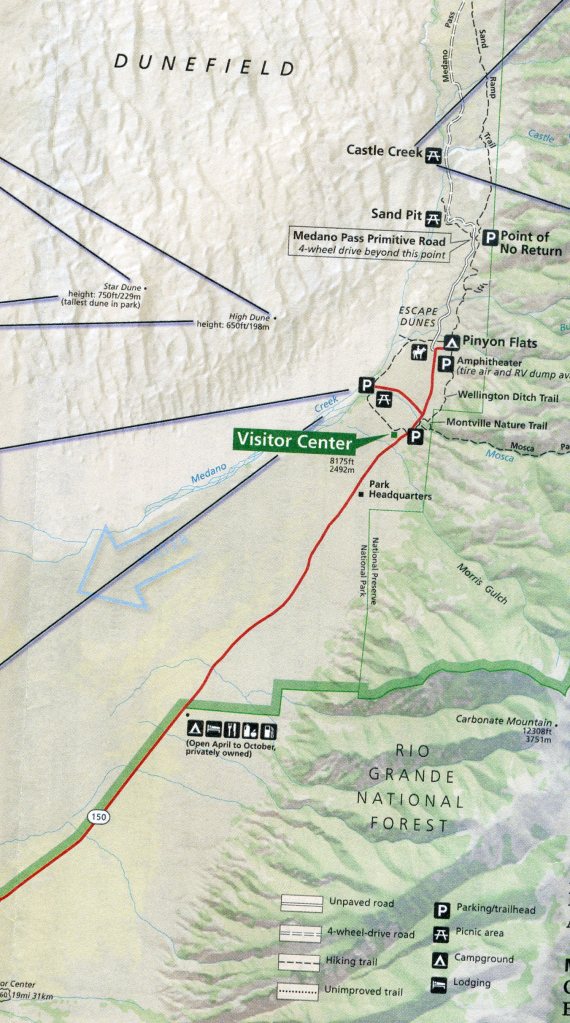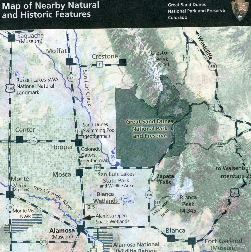 These wind-sculpted hills rise up suddenly, over 210 m high from the floor of the San Luis Valley, between the Rio Grande and the Sangre de Cristo mountains.