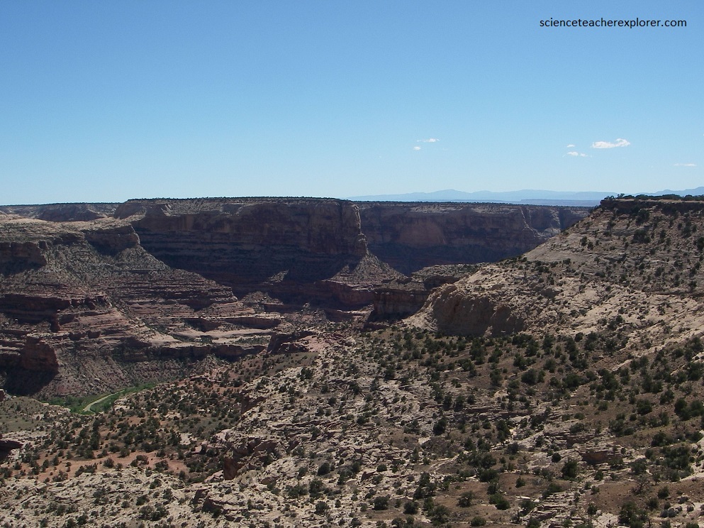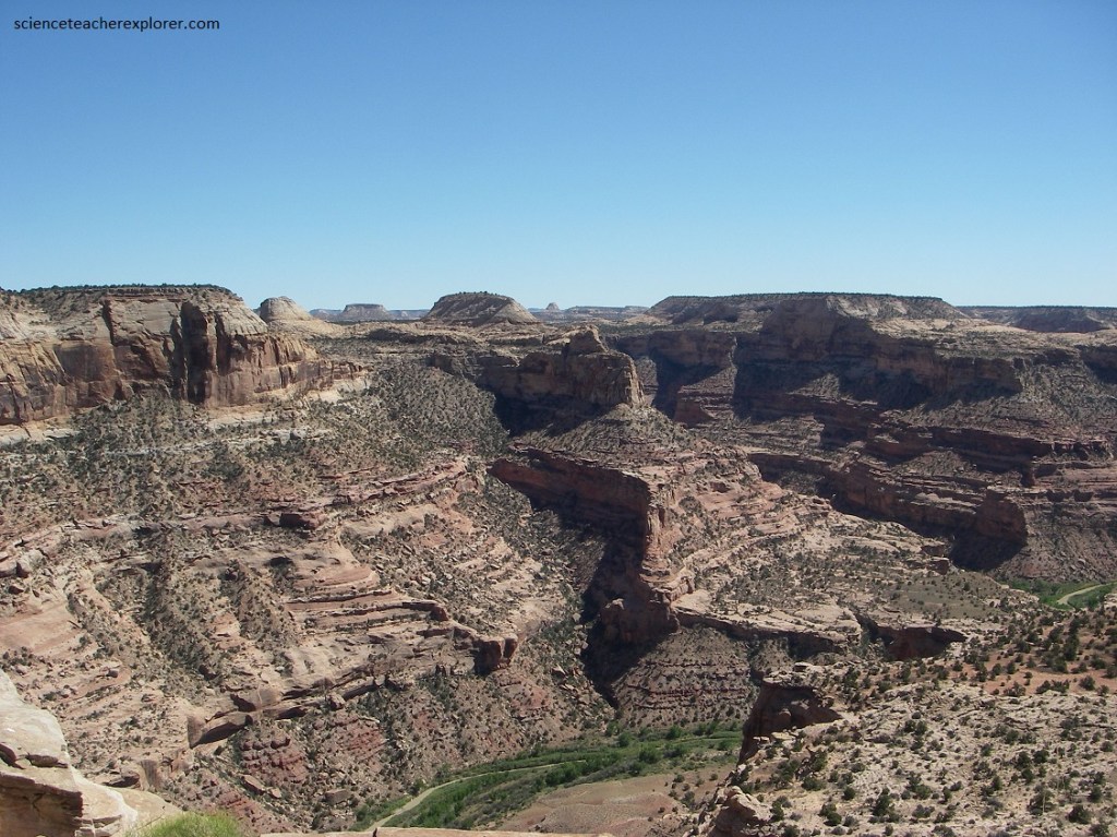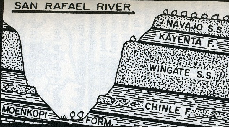 Numerous canyons were eroded into and through the Swell by rivers and streams. The San Rafael River, the largest river in the north part of the Swell, slices across the Swell, cutting deepest along the 3-mile stretch of the Little Grand Canyon, (imaged below).