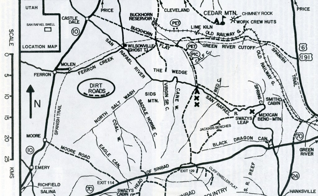 Because of the surrounding mountain ranges, canyons, (Uintah, Wasatch, Grand, etc.) and the San Rafael Reef, it made it impossible for the pioneers to migrate through this area with horses and wagons. The Green River Cutoff road/trail was one of the few passages through the San Rafael Reef. This is where the old Spanish Trail, Gunnison Survey and the old Railway Grade went through the San Rafael Swell.