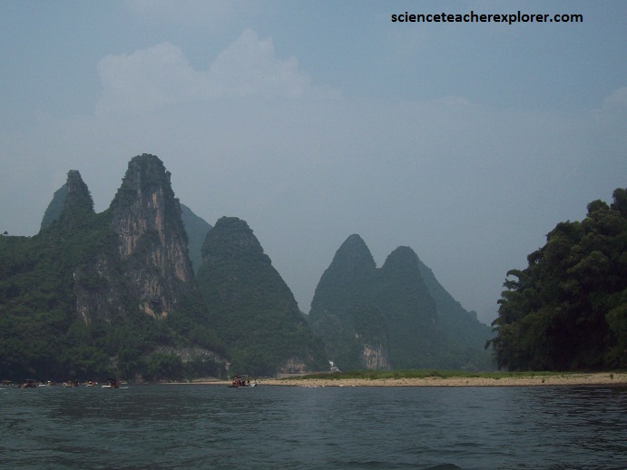 Karst topography is characterized by many caverns and sinkholes that form by the dissolution of limestone or other carbonate rocks. The specific conditions for forming the magnificent topography of the Li-River are fourfold. 1. You need hard, compact carbonate rock, such as the Devonian limestone found around Guilin. 2. You need a strong uplift, in this case provided by the collision of India with Asia to form the Himalaya. 3. You need a Monsoon climate of high moisture during the warmest season. 4. The area must not have been scoured by glaciers, which this region wasn’t.