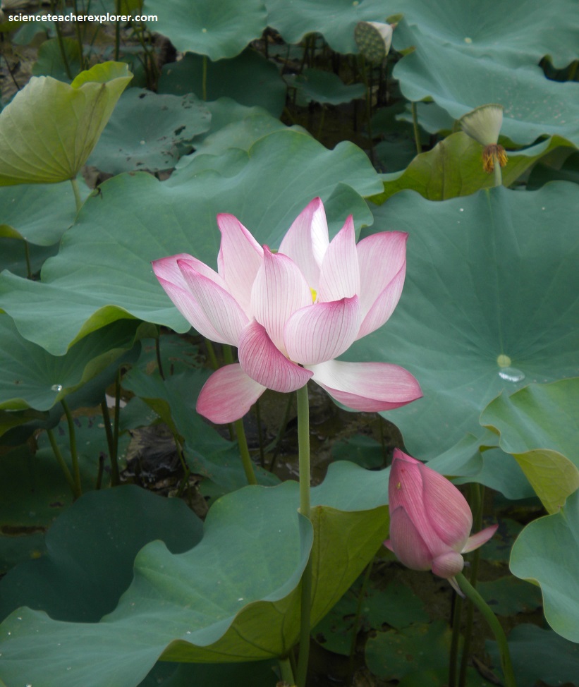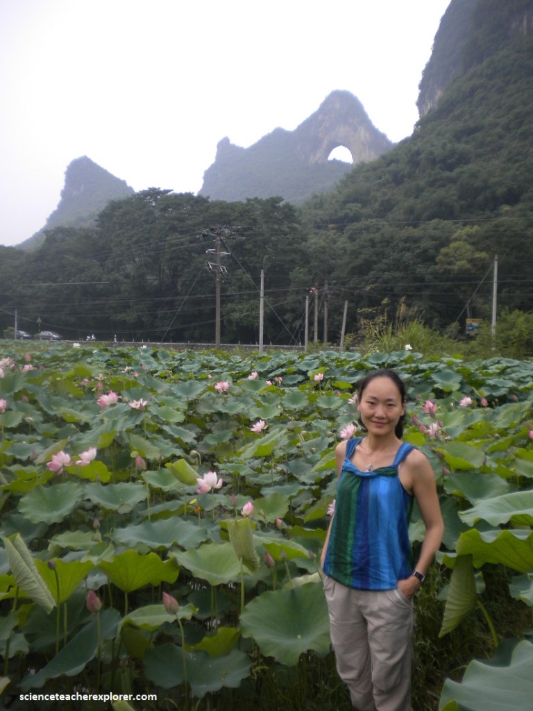 Pictured below is the Nelumbo nucifera, also known as Lotus Plant, is one of two extant species of aquatic plant in the family Nelumbonaceae. It is often colloquially called a water lily. Lotus plants are adapted to grow in the flood plains of slow-moving rivers such as the Li-River.