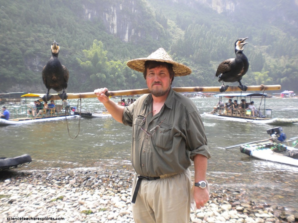 Pictured below, on the Li River you can see fishermen in traditional costume with a very special and time-honoured way of fishing; they use cormorants to catch fish. After sunset the fishermen on bamboo rafts suspend strong lights over the water to attract the fish. The cormorants, which are tethered with rings round the base of their necks, jump off the rafts and dive on the fishermen’s command. They catch the fish and then disgorge them for the fishermen. The catch provides food and income for an entire family, and good cormorants are highly valued.