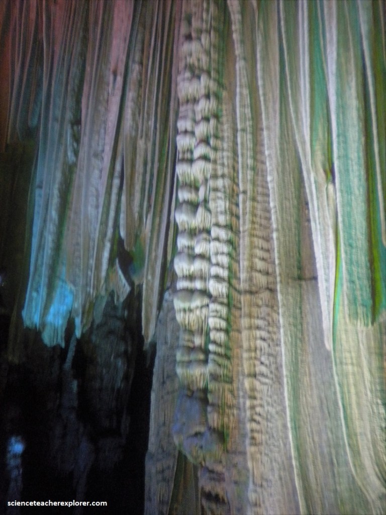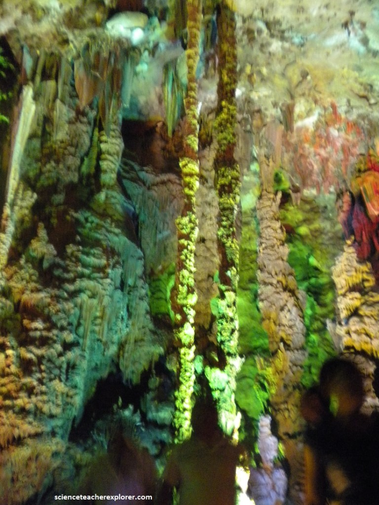 Along the narrow path, there are a variety of glamorous stalactites and stalagmites formed in different geological ages. For hundreds of thousands of years, water containing lime kept slowly dripping in the cave, creating this natural spectacle. The stalactites in vivid shapes resemble columns, towers, waterfalls, curtains, and even human figures. We marveled at the art of nature when standing in such a gorgeous crystal palace, (pictured below.)
