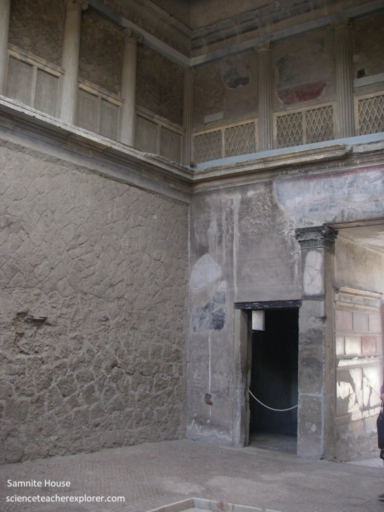 Becky and I continued to explore up Cardo IV. On the immediate right, we came across the “Samnite House” (Casa Sannitica). It was built in the 2nd century BC. This is one of the oldest residences in the city.