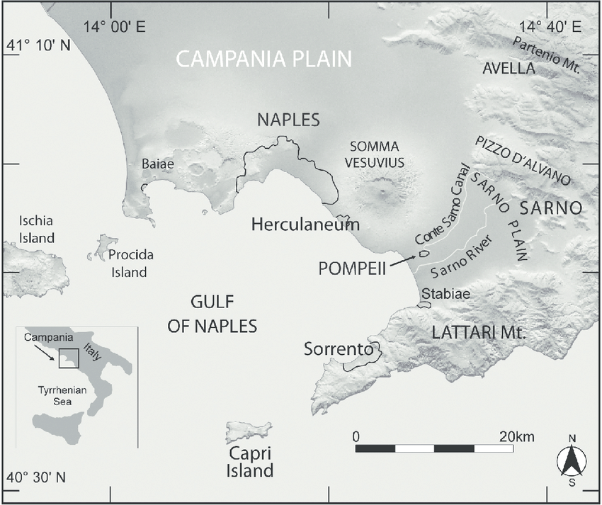 “Herculaneum was a small fortified city situated on a plateau of volcanic ash, raised above the sea, and enclosed by two valleys traversed by two torrential water-courses, overlooking the shore of the Gulf of Naples”, described by a 1st century historian named Sorrento.