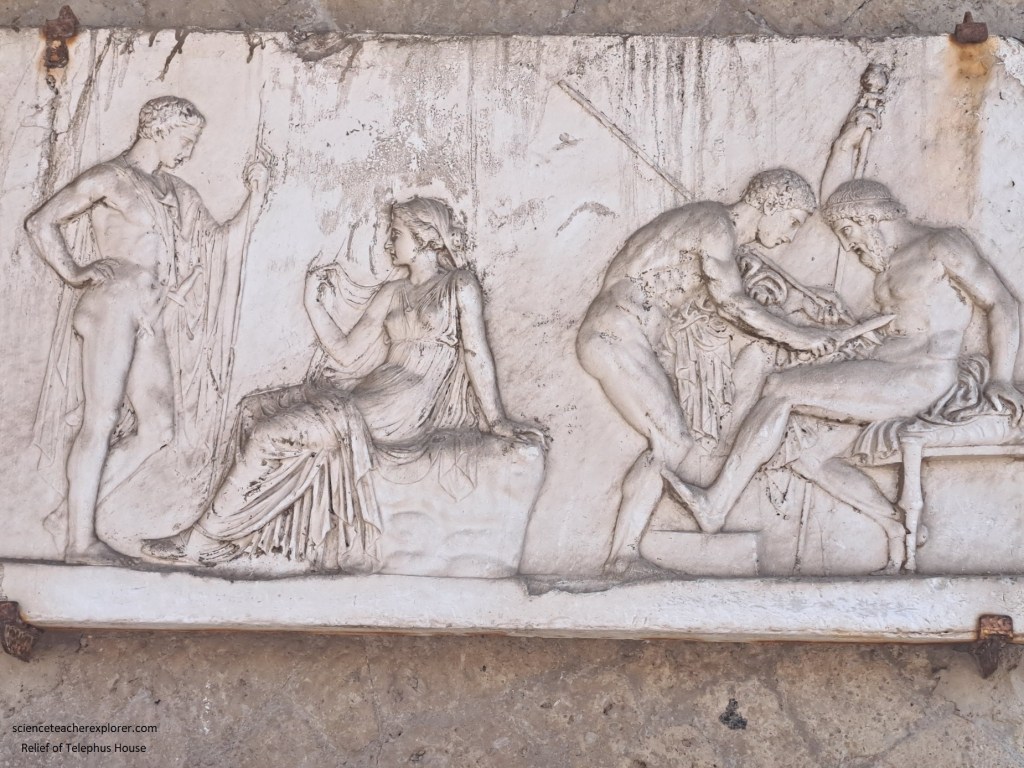 Also displayed on the wall is the plaster-cast of the Relief of Telephus, pictured above, showing Achilles questioning the oracle and the curing of the wound on the part of Telephus.