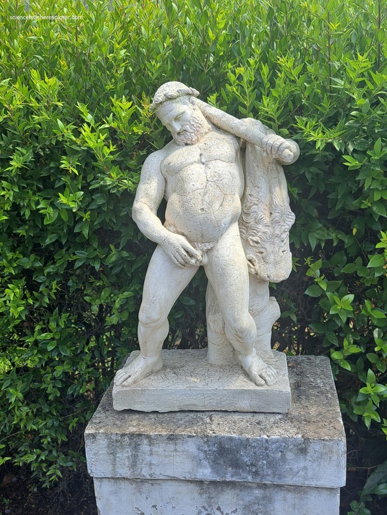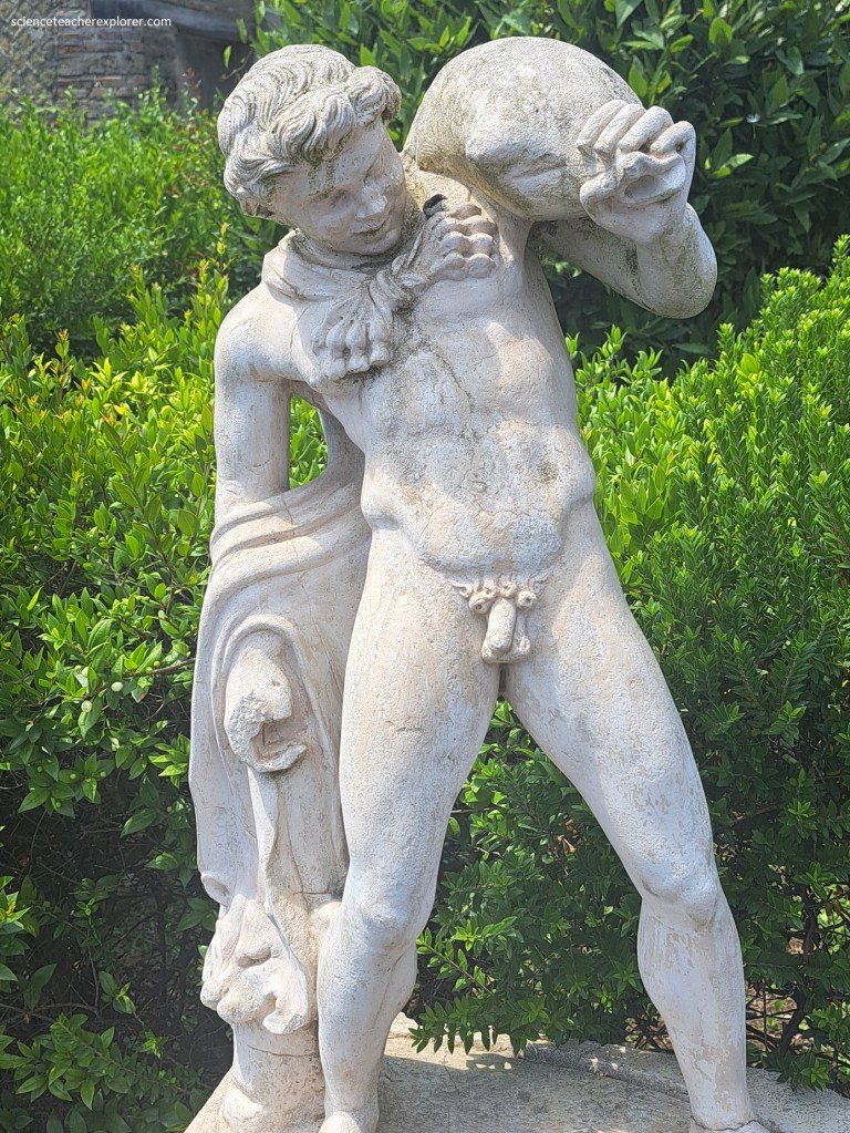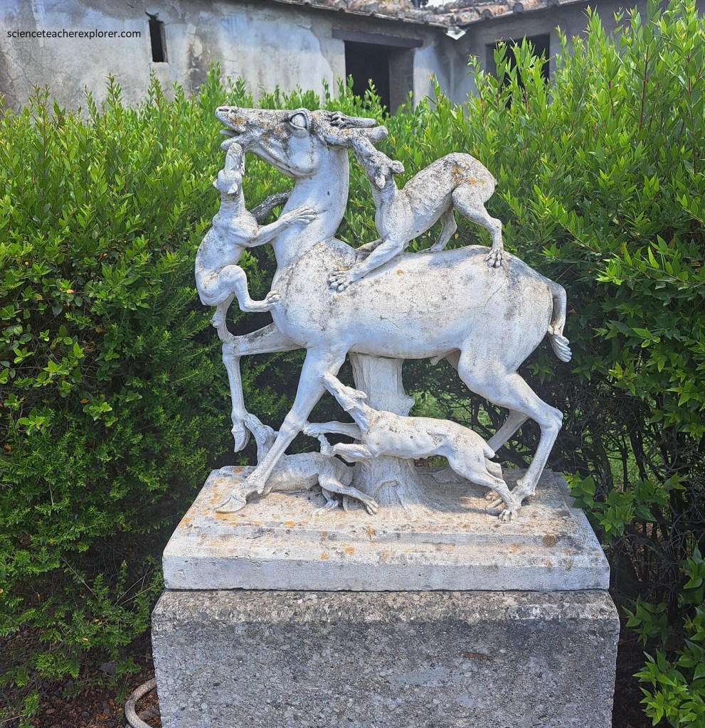 We also found in the garden, several strange, (according to our current standards), sculptures showing a stag being attacked by hounds, (from which the house was named after), a drunken Hercules and a satyr with a wine-skin, from which the water of a fountain gushed forth.