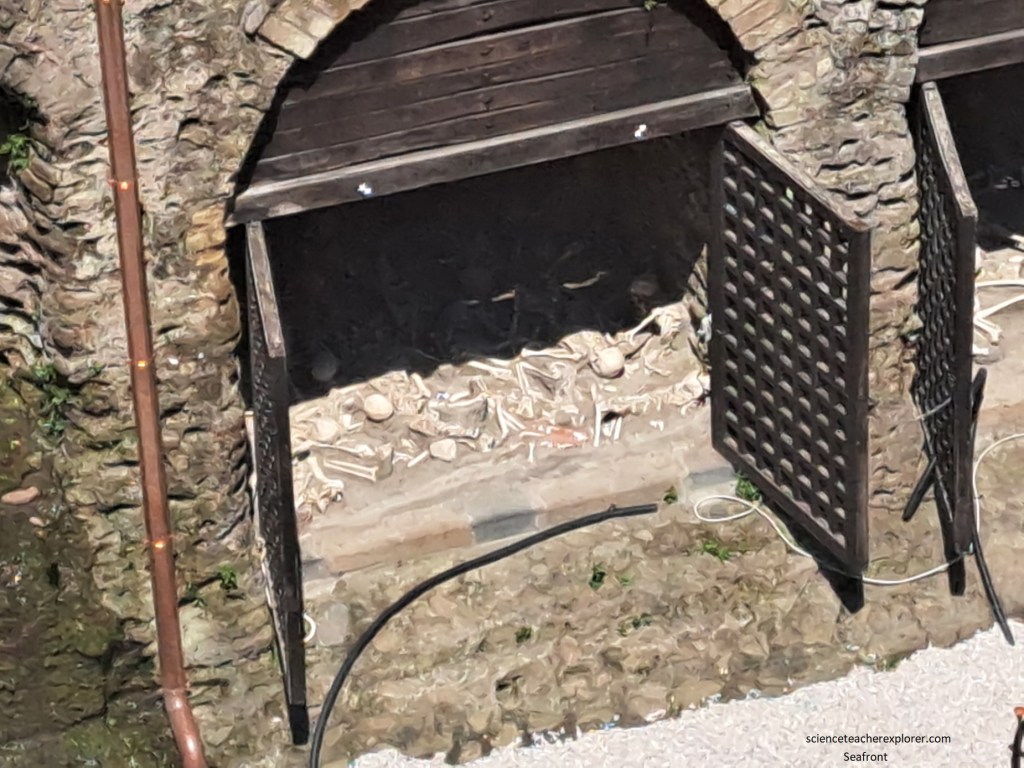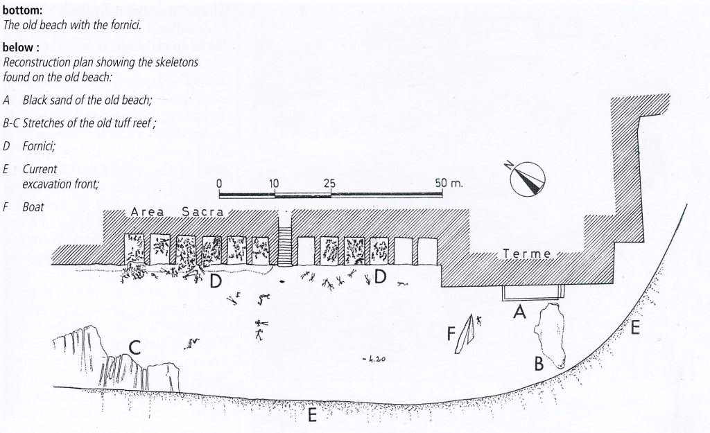 Almost exclusively the male-skeletons used their front teeth as working tools, possibly in relation to activities connected with fishing. Amazingly, a remnant boat was found on the beach below the ‘Fornici’, (picture above).