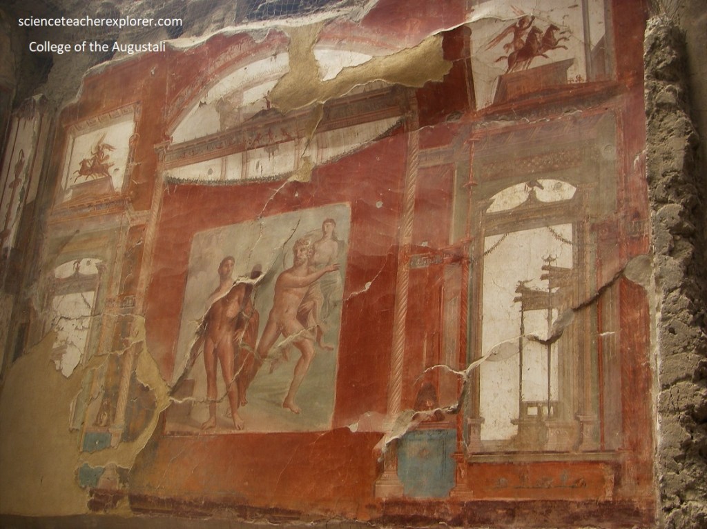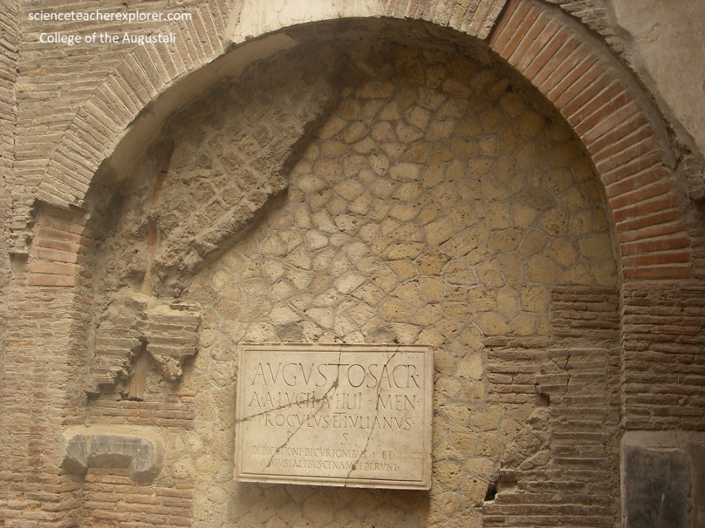 Pictured above, the relationship of the building with Augustales (a privileged civic order, which was occupied with the imperial cult, made up largely of rich freedmen), was confirmed by an inscription on a slab of marble, now attached to the wall, consecrating to Augustus when he was still alive.