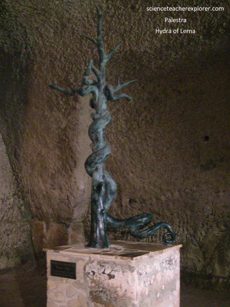 Pictured above, the Hydra of Lerna, a sculpted bronze fountain that featured the seven-headed monster defeated by Hercules as one of his 12 labors. This cavernous space was quite dark.