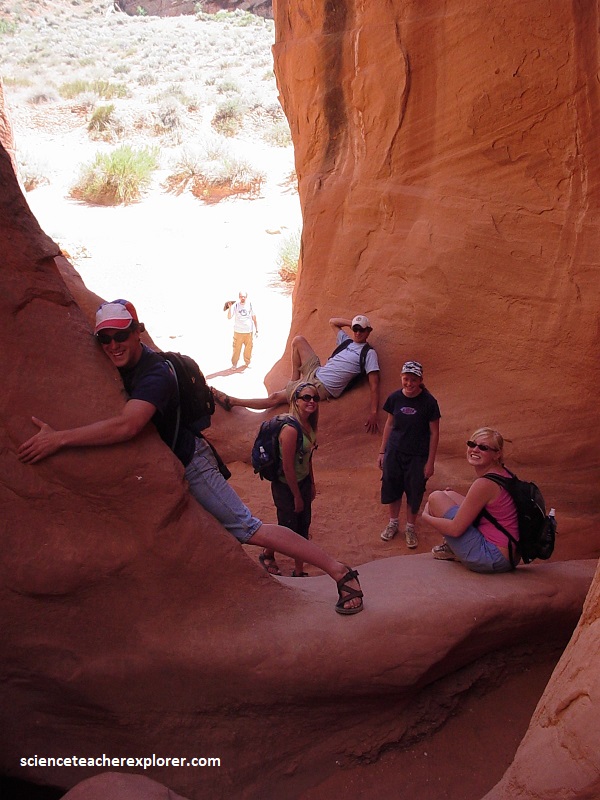 In 2006, I led another educational expedition to the Devil’s Garden, (19 km south of Hwy 12) just west of the Hole-in-the-Rock Road. At Devils Garden, Mother Nature has sculpted the Entrada Sandstone into goblins, stone babies, monuments, and delicate arches to delight the beholder