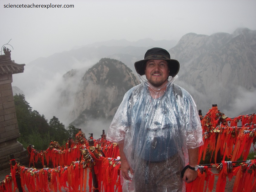 Pictured below, I’m standing on the top of the “Central Peak”. Notice the orange clips and locks from the locals that indicates their climb. The “Central Peak” is known as Jade Maiden Peak. There is a Taoist Temple at the top of this peak called the Jade Maiden Temple. Legend has it that the daughter of Duke Mu of Qin (569 – 621 BC) loved a man who was talented at playing the tung-hsiao. In order to avoid this temptation and cultivate her spirituality, she gave up the royal life to become accustomed to and became a hermit, secreting herself on the Central Peak of Mount Hua. From then on, the temple was established and the peak was named Jade Maiden Peak after the Duke’s daughter.