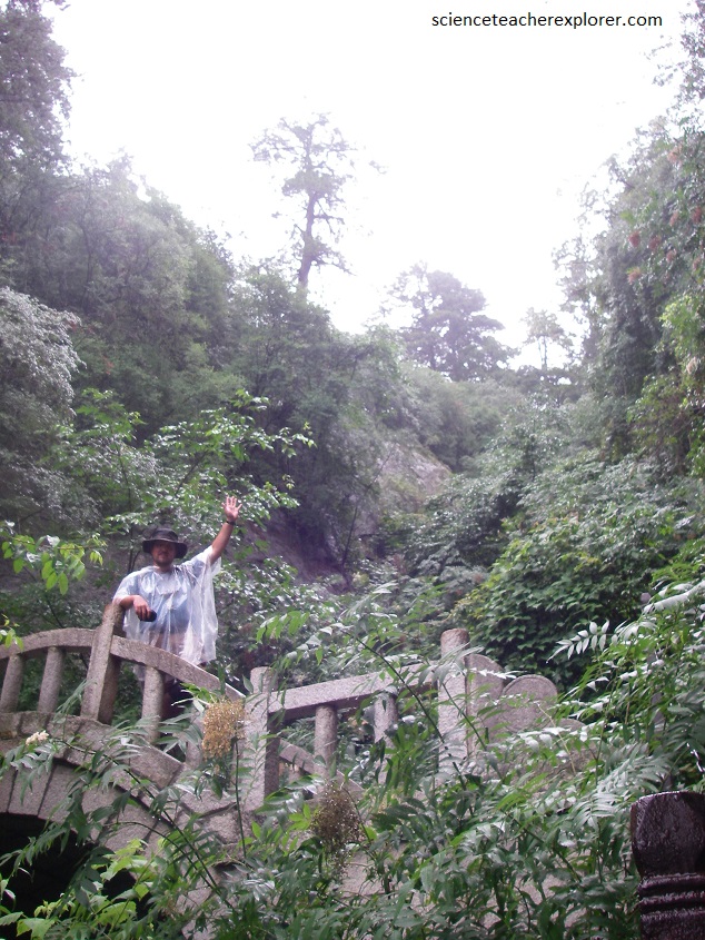 Pictured above, the South Peak trek was also the site of the infamous Plank Road, a plank path built, (by the ancesters of the Huaxia Nation), along the side of a vertical cliff that is only about 0.3 m wide and forced me to look down at the almost bottomless gulf below. This section, truly scared the daylights out of me. I took few pictures because of my extreme focus on the trail. Actually, I didn’t make it to the Jintian Palace. I finally chickened out and turned back. Pictured below, is the point where I turned back.