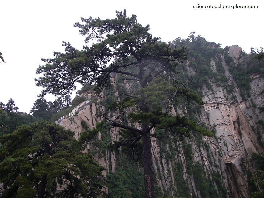 Pictured above, there are a large number of ancient trees on Hua Shan. Some of them are very rare and are of considerable value in terms of appreciation of nature. The joint landform of granite has contributed to the fascinating scenery of trees growing from rock and the rock blossoming with moss on the mountain.