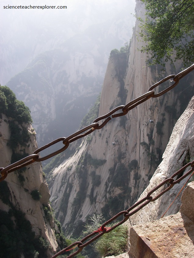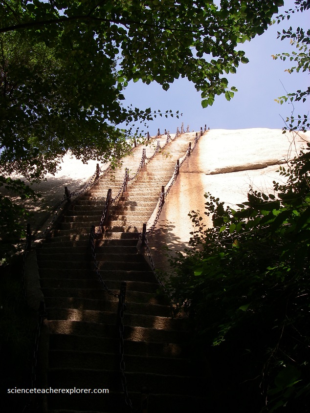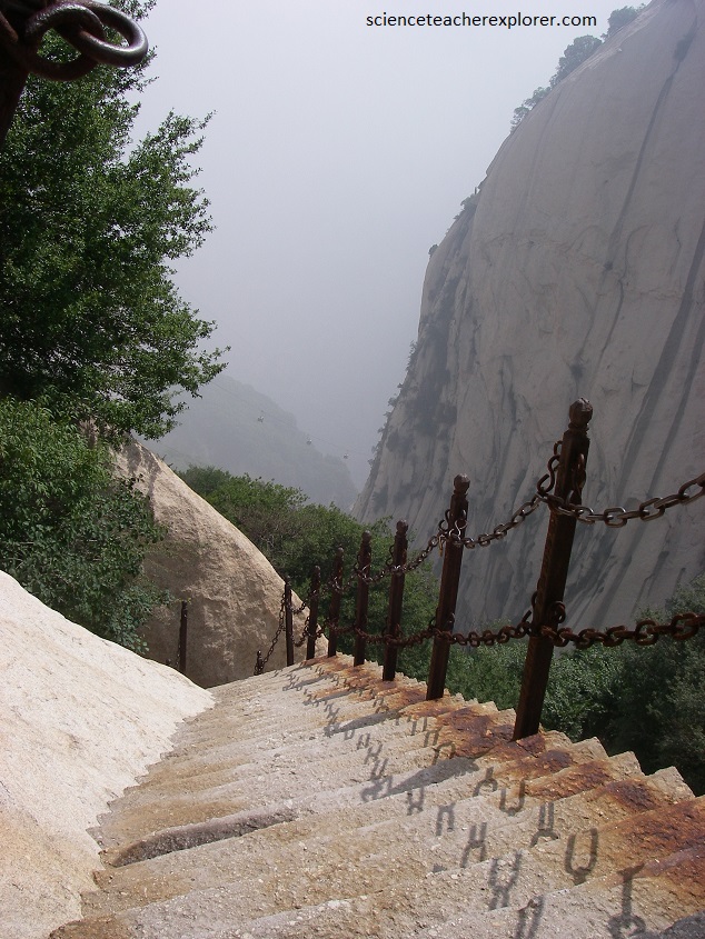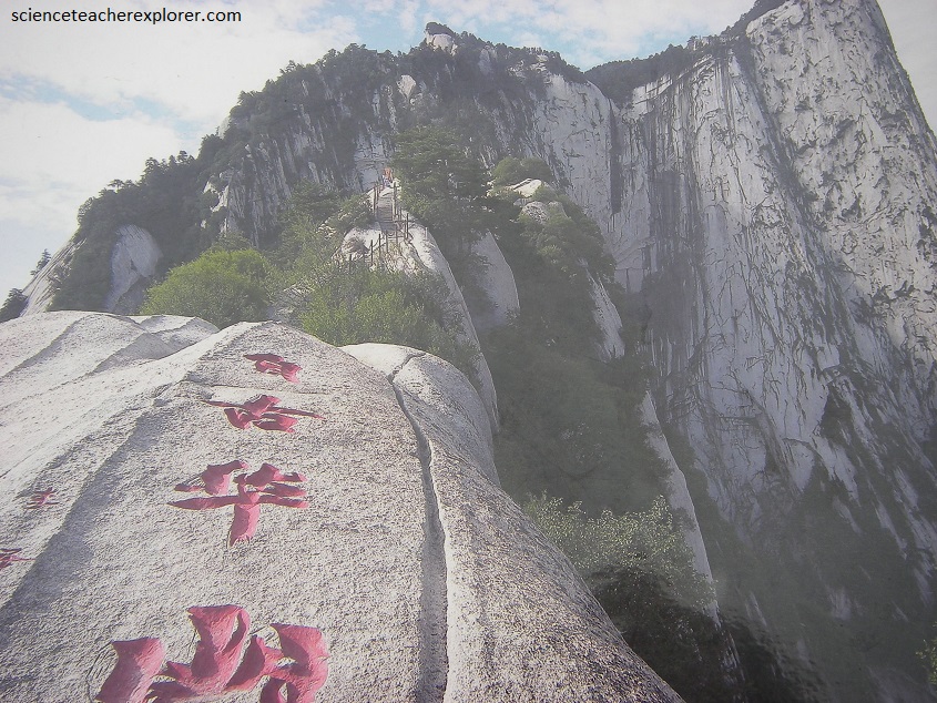 Hua Shan is a remarkable mountain. As with about all of the sacred mountains of China, it too is a mass of solid granite, at least the central portion.