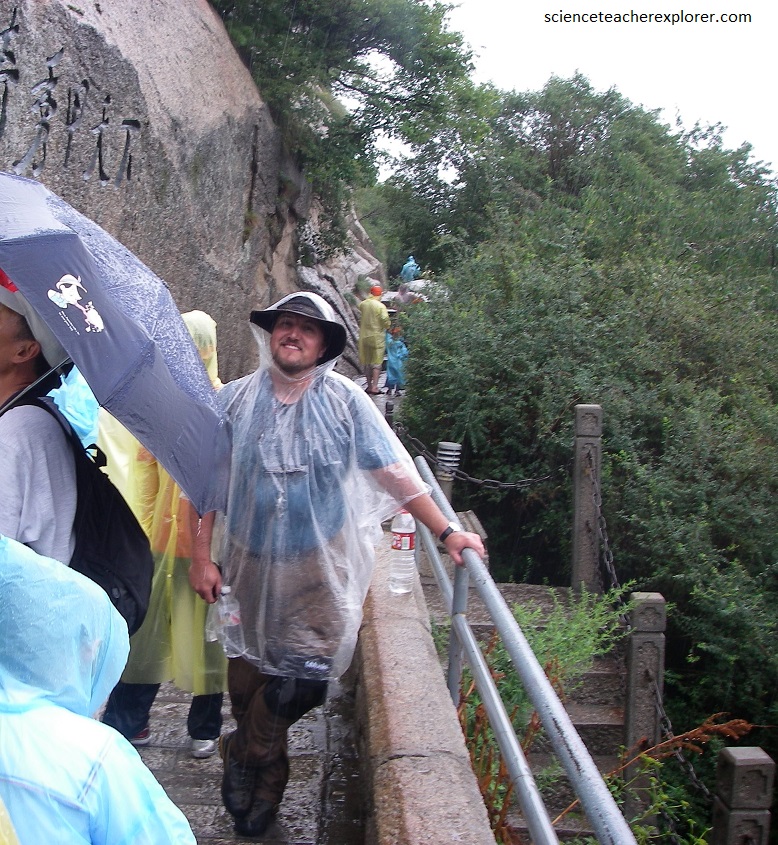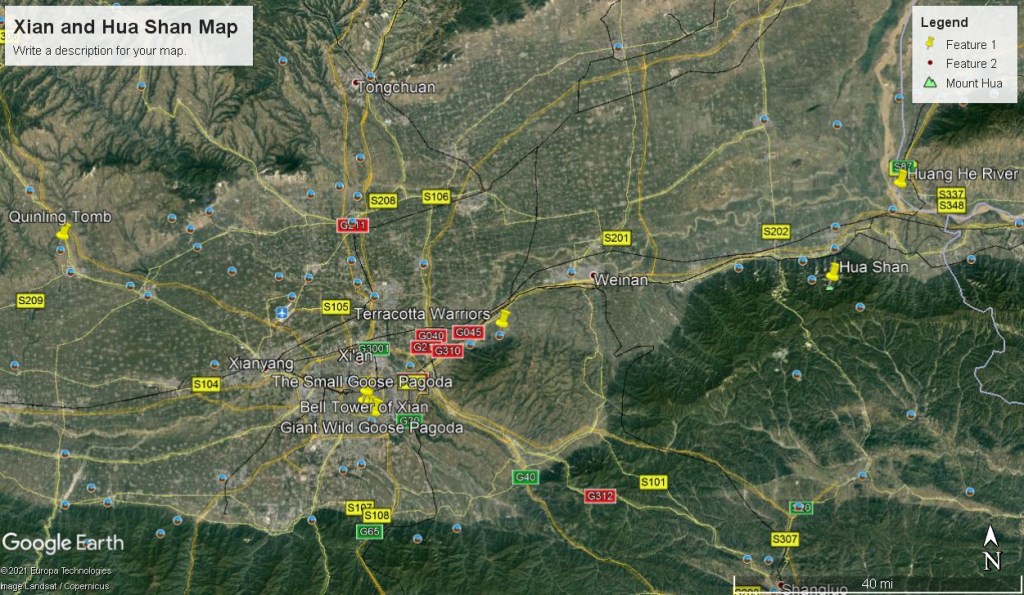 In July of 2008, I had the opportunity to climb Hua Shan while trekking northwest China. I was traveling with a small group from Utah in the Xi’an area. Hua Shan is one of five sacred Taoist mountains of China. This one is located on the main rail line running between Xian and Luoyang, and very near where the Huang He (Yellow River) makes its eastern turn after running south. The main city at the foot of Tia Hua Shan is Hua Yin City of the Shanan Xi Province. To the east is the Guan Zhong Plain. The are intersects the Qin, Jin and Yu Provinces.