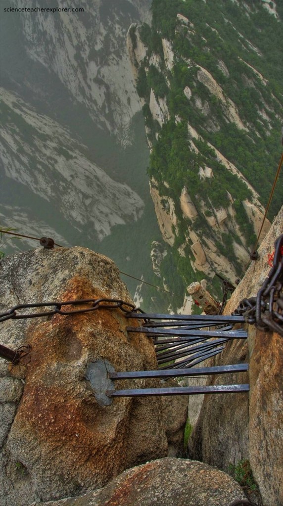 China’s Hua Shan Mountain is not among it’s highest, but this is difficult to believe when edging along the path at the face of Ear Touching Cliff.
