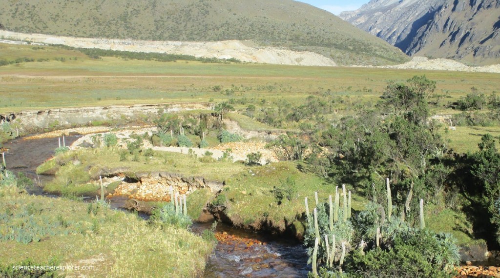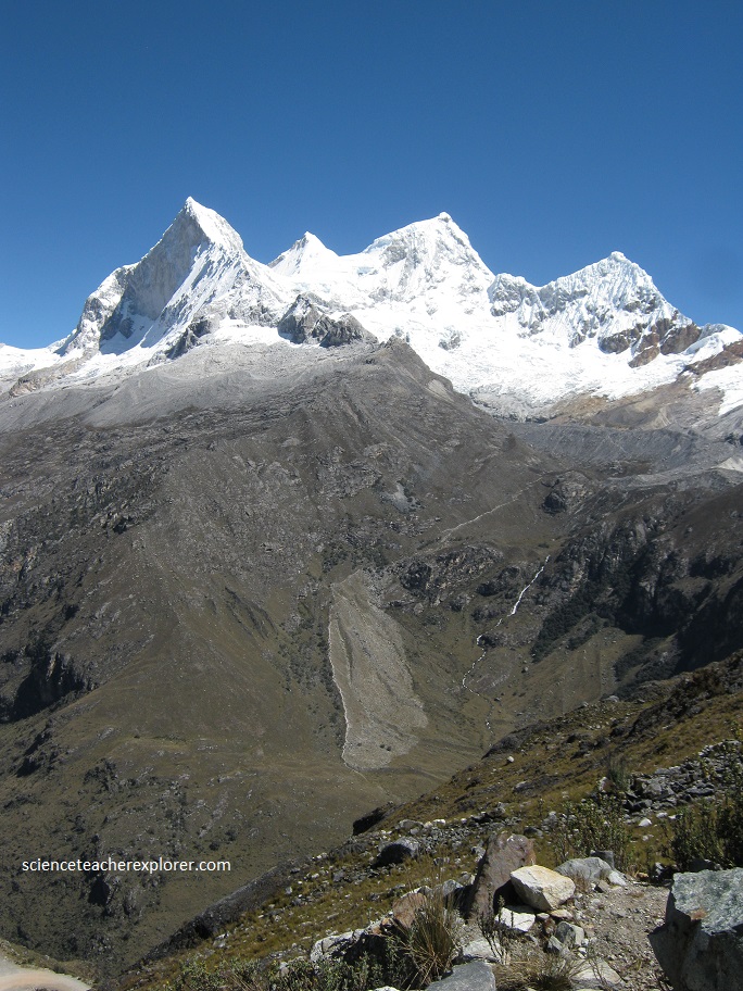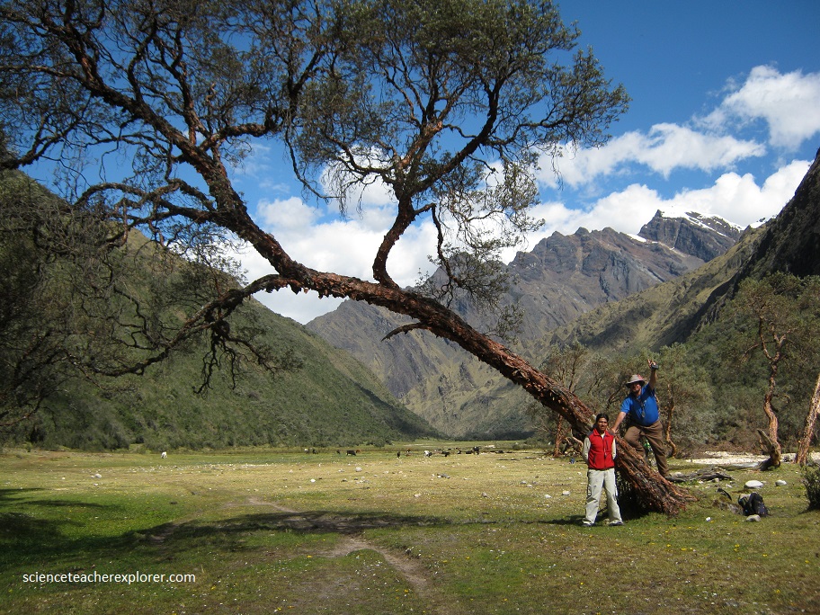 In June of 2014, Kathy Stoker (my trekking buddy) and I started our trek of Peru exploring the Huascaran National Park just east of Huaraz. Situated in the aptly named Cordillera Blanca (“White Mountains”), Huascaran National Park protects the heart of the World’s highest tropical mountain range in the central Peruvian Andes. The property of 340,000 hectares covers a diverse mountain landscape culminating in 27 snow-capped peaks above 6,000 m. It includes the spectacular Nevado Huascaran (Mount Huascaran), Peru’s highest peak at 6,768 m, as the property named after the 16th Century Inca leader Huascar. The snow-covered peaks, the numerous tropical glaciers and glacial lakes, the high plateaus intersected by deep ravines with torrential creeks and the variety of vegetation types form a spectacular landscape of rare beauty.