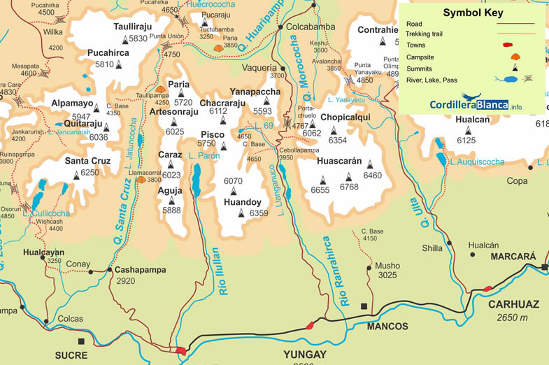 We had researched that is was one of the best-known trekking trails in the Cordillera Blanca and the Andes of Peru, and is located in the northern part of the Cordillera Blanca. The circuit includes the route of three valleys: Santa Cruz, Huaripampa and Llanganuco. The Santa Cruz Trek crosses two passes above 4700m, during the trek always observing snow-covered peaks exceeding 5000m, such as: Huascarán, Huandoy, Alpamayo (south face ), Tocllaraju, etc.