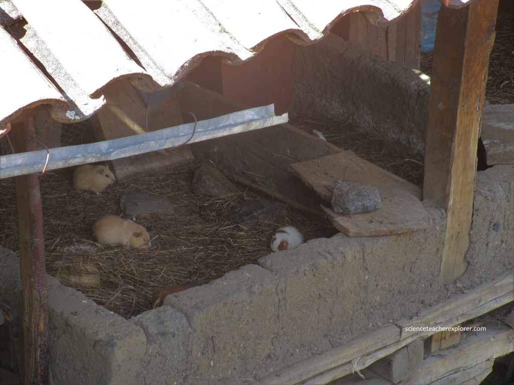 One of the strange things we saw at Vaqueria was this small guinea pig farm. Guinea pigs seem to be a delicacy in Peru. Commonly seen roasted in many restaurants in Peru. Pictured below, is an elevated guinea pig farm.