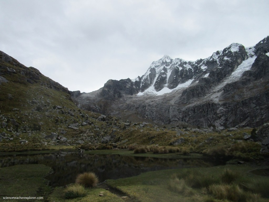 It was a beautiful drive up the harrowingly sharp switchbacks to the Portachuelo viewpoint (4700m). Along the way we were introduced to the first five giants of the Cordillera Blanca range: Mt. Huascaran (6768m), Huandoy (6395m), Chopicalqui (6354m), Chacraraju (6112m), and Pisco (5752m). Pictured below is Huandoy peak. It is the second-tallest peak of the Cordillera Blanca section of the Andes, after Huascarán. These two peaks are rather nearby, separated only by the Llanganuco glacial valley of which we drove through. Huandoy peak is a snow-capped mountain with four peaks arranged in the form of a fireplace, the tallest of which is 6,395 m.