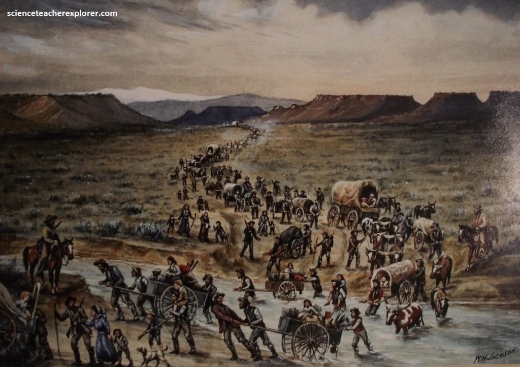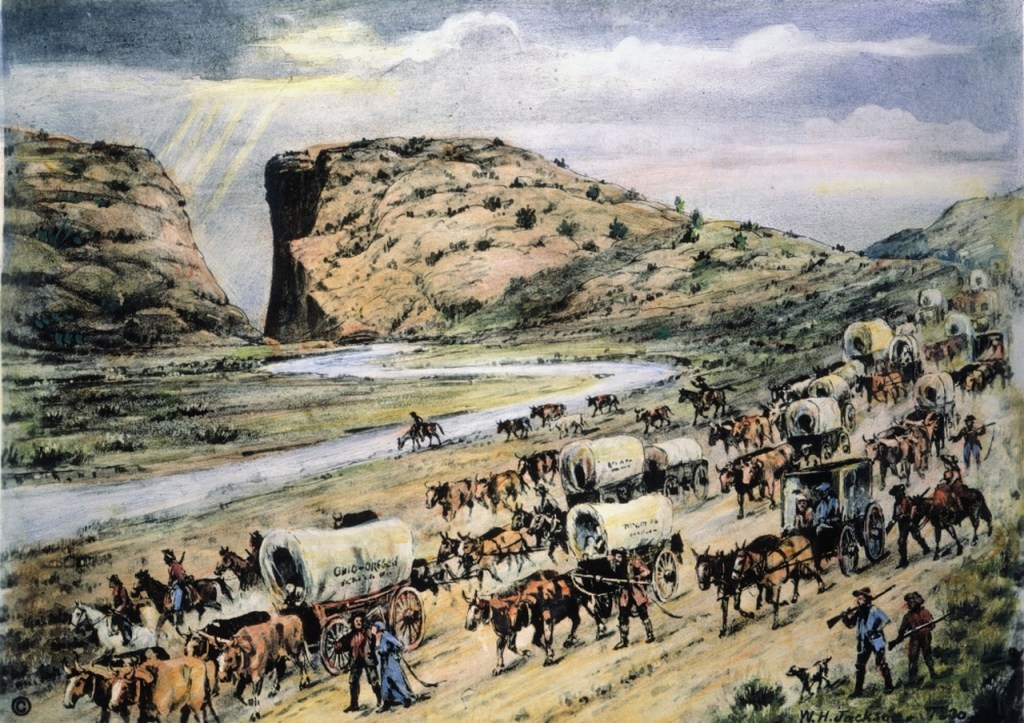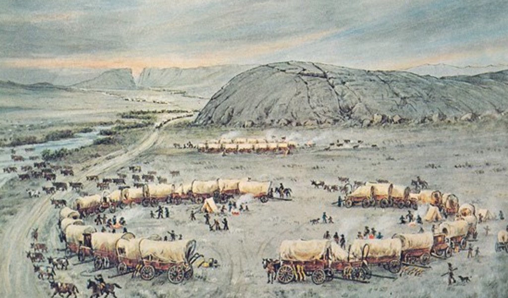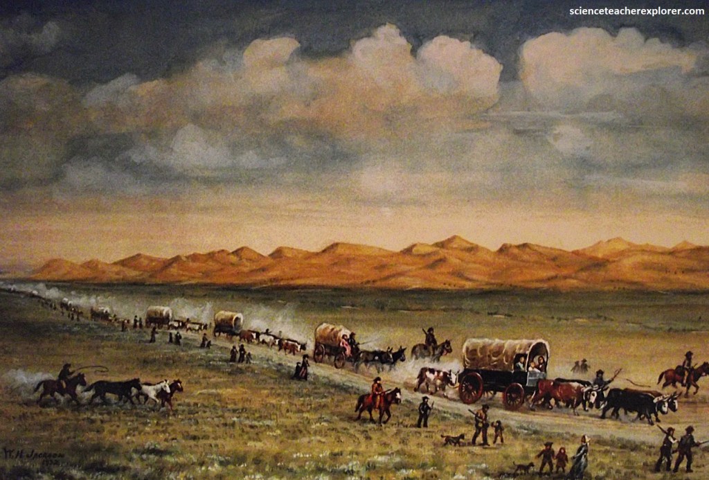 Prior to 1830, supplies were brought to the trappers’ rendezvous by pack tain. That year, however, the partnership if Jedediah Smith, David Jackson, and William Sublette tried a new method, (wagons!). This was the first use of wagons on the route of the Oregon Trail.