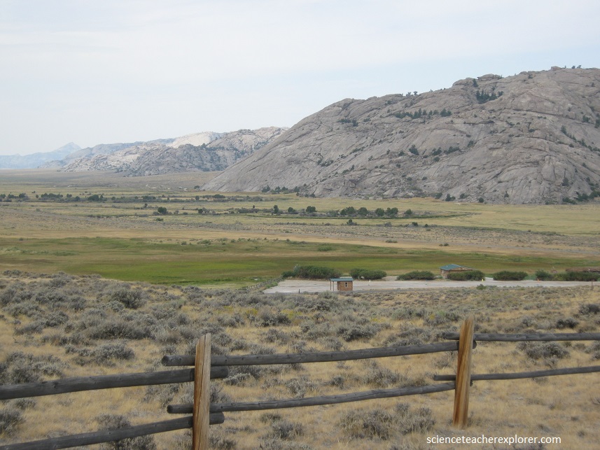 A few kilometers upstream from where the pioneers gained the Sweetwater River, they came to Independence Rock, (a kilometer long ridge of granite that rises like a whaleback from the sagebrush sea of the Sweetwater Valley. Earlier, (a few years before), I stopped by the Historical Landmark of Independence Rock, Wyoming in 2012.