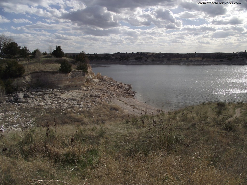 Just a short drive north from Ogallala, Lake McConaughy, (with more than 161 km of sandy shore and 35,000 acres of clear, deep water). Lake McConaughy, formed by a dam, (Kingsley Dam), across the North Platte, is the largest body of surface water in Nebraska. The reservoir provides water for irrigation, flood control, power generation, and recreation. The extensive sandy beaches developed from erosion along the shoreline of the sandy sediments that surround the lake, (the Sand Hills along the north side and the Ogallala group along the south side). The Ogallala group, the last sheet, (from three), of sediments to spread over the plains at the end of Tertiary time. These sediments are mostly sands and some gravels, punctuated by infrequent volcanic ash beds, (the ash originated from eruptions far to the west). Most of these sediments come from the Laramide orogeny, producing the Laramie Mountains of Wyoming, the Front Range of Colorado, the Black Hills of South Dakota, and other uplifts that formed the present-day Rocky Mountains.