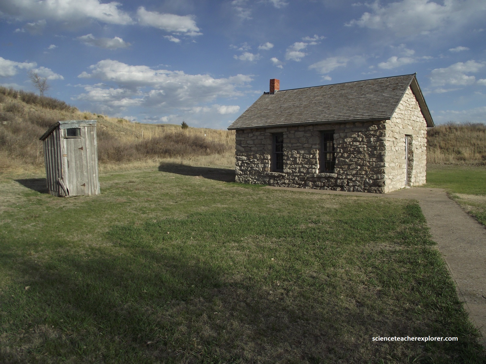 Residents of the district 55 built this stone Ash Creek Schoolhouse in the summer of 1903. rock quarried from the nearby hillsides was hauled in and laid in lime and sand mortar. A nearby rancher donated the quarried lintels above the doors and window. This building, pictured above, replaced an older sod schoolhouse located east of Windlass Hill. From 5-12 students attended this school in the years from its construction until 1919.