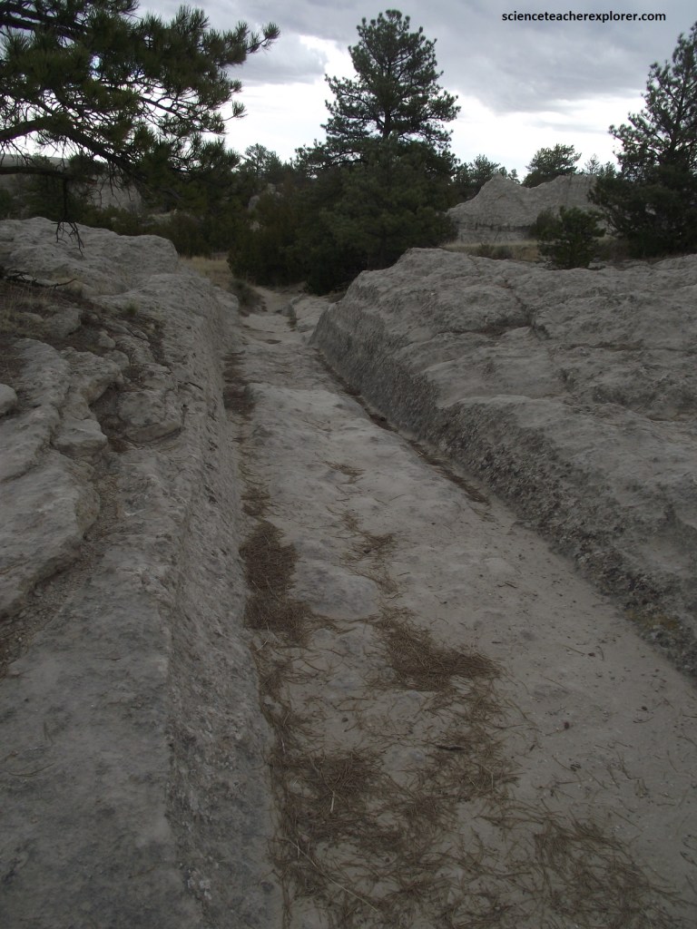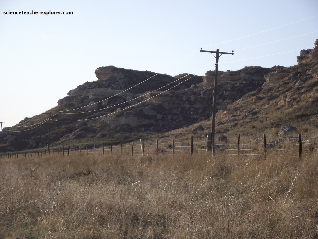 Since sedimentary rock is the softest type of rock in geology, Scotts Bluff erodes easily. Scattered through the top layer of the bluff are “pipy concretions” of hard calcium carbonate. This “cap rock” has kept the bluff from eroding faster by protecting the softer layers below. While harder than the surrounding rock, the slender horizontal bodies of rock called concretions still belong to the sedimentary grouping of rocks.