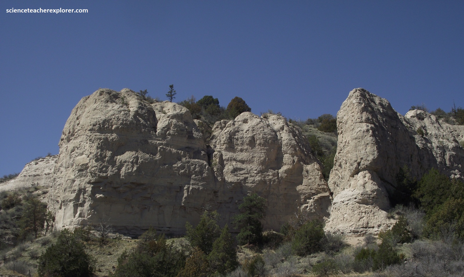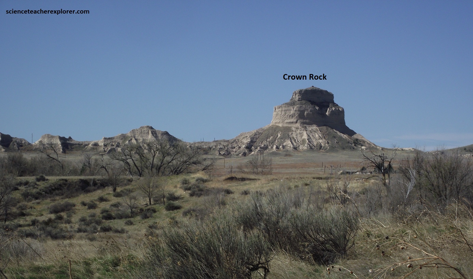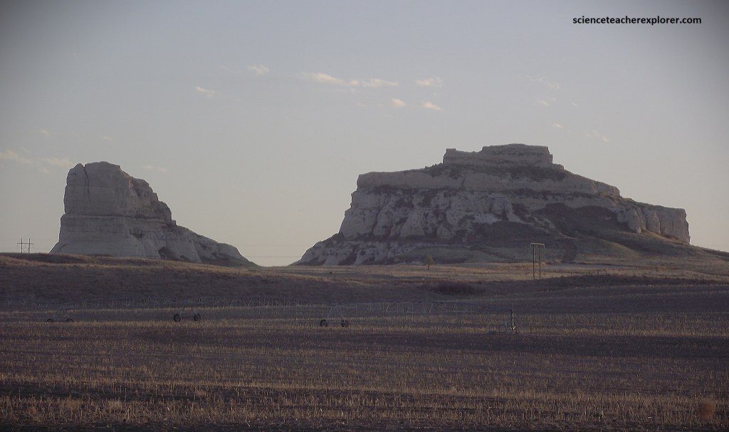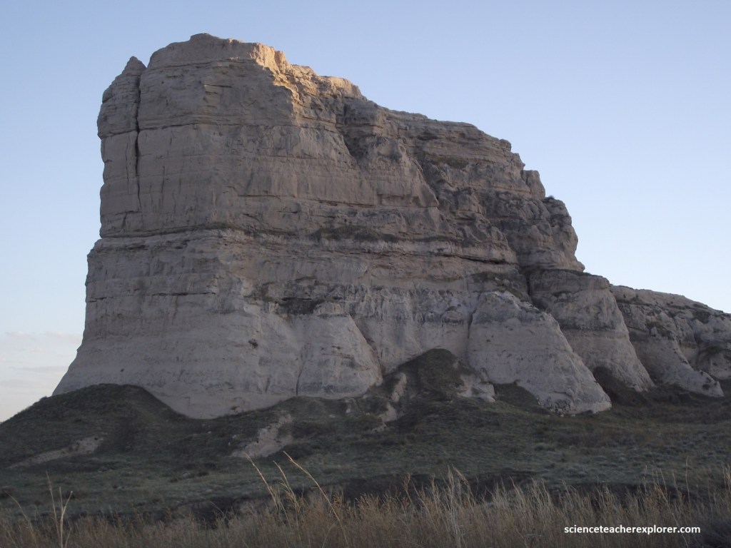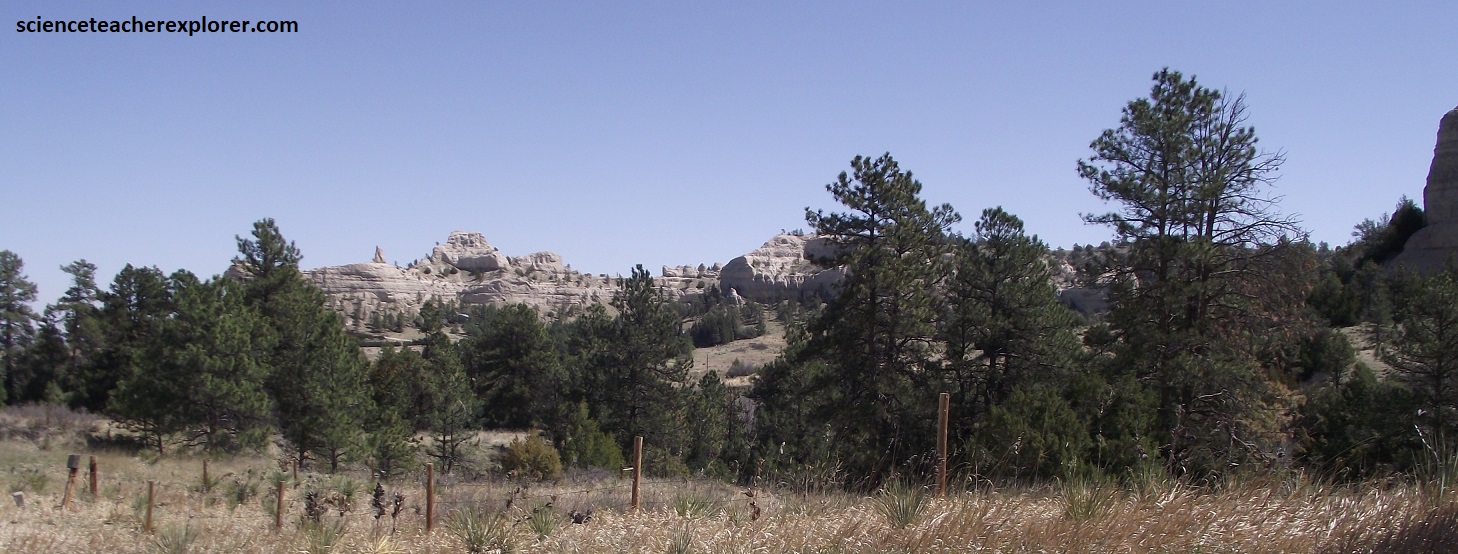 Pictured above, Chimney Rock is a pinnacle cut from Arikaree group strata. While it looks delicate, it has persisted since pioneer times, when it was an important landmark along the Oregon Trail.