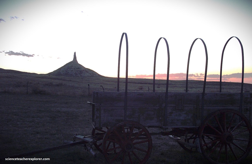 As I crossed to the south side of the North Platte River at Bridgeport, (pictured above), I could see Wildcat Ridge to the south. The first lonely outposts of this feature are Courthouse Rock and its companion Jail rock, small buttes near the confluence of Pumpkin Creek with the North Platte. Courthouse Rock and Jail Rock, (so named because they reminded the pioneers of structures back home), were the first of several natural “road signs” encountered on their grueling 3200 km journey across the plains.