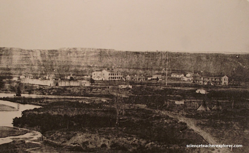 As relations between whites and the America Natives worsened through the 1850s, Fort Laramie became a key staging point for the U.S. Army’s anti-Indian campaign. [Before that, in the 1840s, the fort was a bustling center of commerce on the western Great Plains. Crowds of Sioux and white traders lived in sprawling nomadic camps around the fort, bartering and bargaining with each other and with passing emigrants.