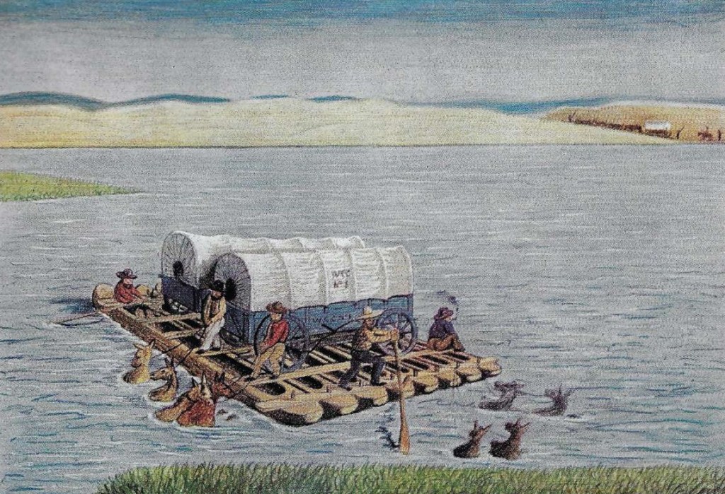 After passing through the gauntlet of the Black Hills, the emigrants gained the North Platte River again in the area of Deer Creek, (near present Glenrock, Wyoming). They were now on the north side of the Laramie Range, and their route upstream would take them west past the mountain. Somewhere in the next 64 km, (between Deer Creek and Bessemer Bend), the pioneers had to cross to the north side of the North Platte River. Further travel upriver beyond Bessemer Bend the river heads south, whereas the trail needed to lay west, overland toward the Sweetwater River. {Note that Bessemer Bend is southwest of present day Casper, Wyoming).