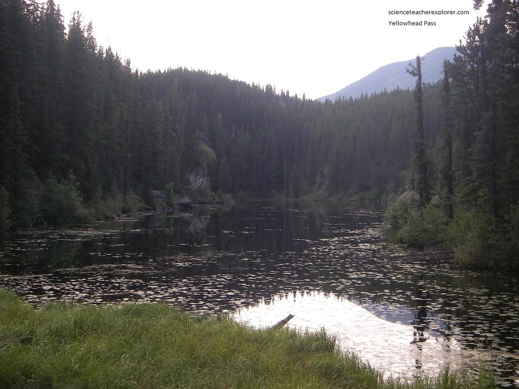After exploring Maligne Canyon, Becky and I took a brief detour from the Jasper Village to Yellowhead Pass. One of the lowest places on the Continental Divide is at Yellowhead Pass, only 1,131 m above sea level. Water flows east ward from this divide through Miette River to join the Athabasca River near Jasper and finally empty into the Arctic Ocean. Water flows westward into a tributary of the Fraser River and ends ultimately in the Pacific Ocean at Vancouver. The divide here is part of the Alberta-British Columbia boundary and is the western boundary of Jasper National Park.