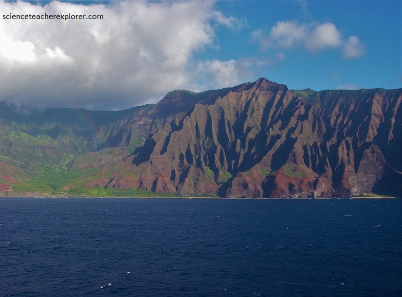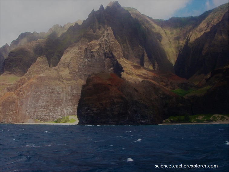 The Na’ Pali, which translates to “the cliffs,” was first formed entirely of lava flows. Later, water flow on the island had a major affect on its shape.