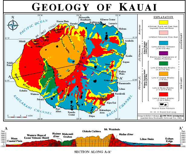 Kaua’i’s geology is extremely complex. It has now entered a dominantly destructive phase. The island is essentially disappearing. 71% of beaches on Kauai are eroding by wave action, (pictured below).