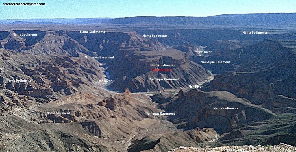 I should mention, the Fish River Canyon has more recently been impacted by the opening of the East African rift (25-22 million years ago) and the continuing tectonic uplift of the southern African continent, a phenomenon known as the ‘African superswell’.