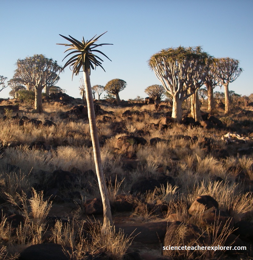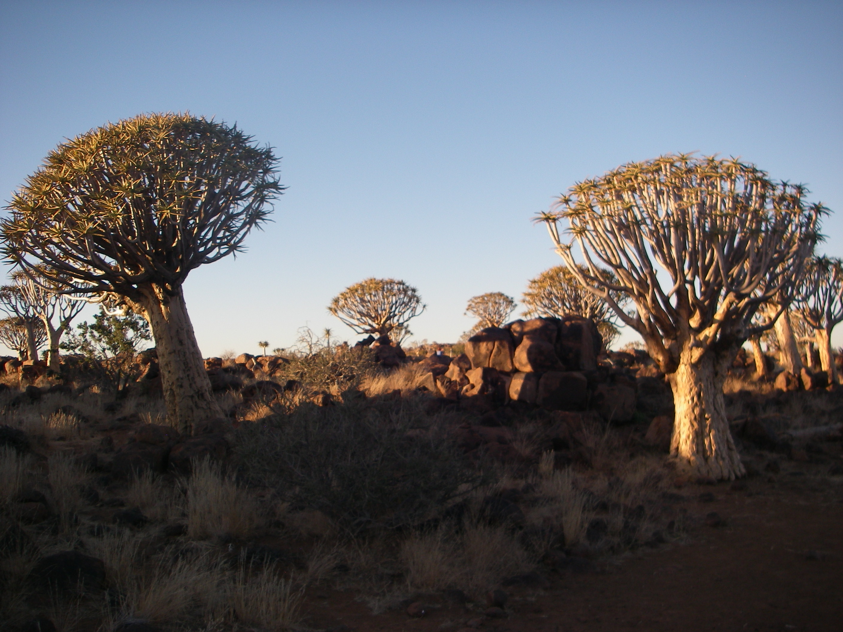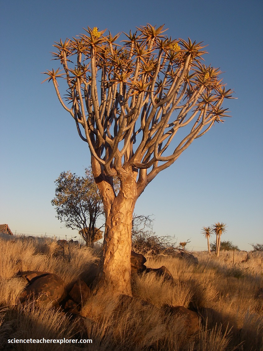The Quiver Tree Forest (Kokerboomwoud) near Keetmanshoop, Namibia, is a national monument featuring roughly 250 specimens of Aloidendron dichotomum that are 200-300 years old. Located on Gariganus Farm, this surreal, rocky landscape is a popular photography spot, famous for its unique, alien-like aloe trees that were historically used by the San people to make quivers for their arrows. We arrived at sunset, which was an ideal for photography, offering warm light on the trees, (pictured below). The trees are actually succulents rather than trees, with thick, split bark that grows up to 300 years old. They produce yellow flowers during the June that we were there.