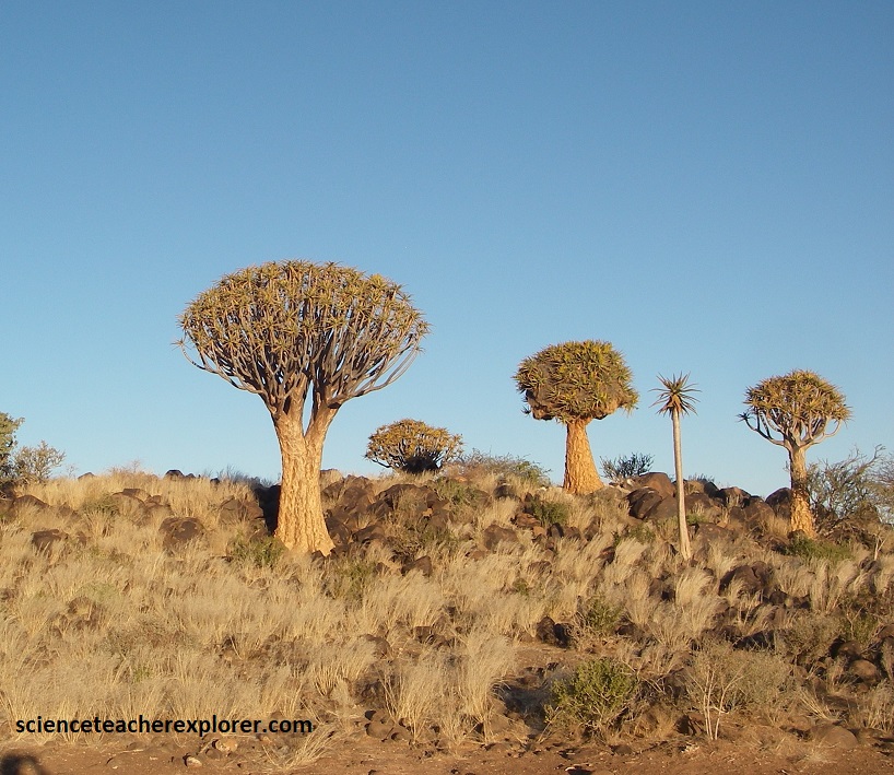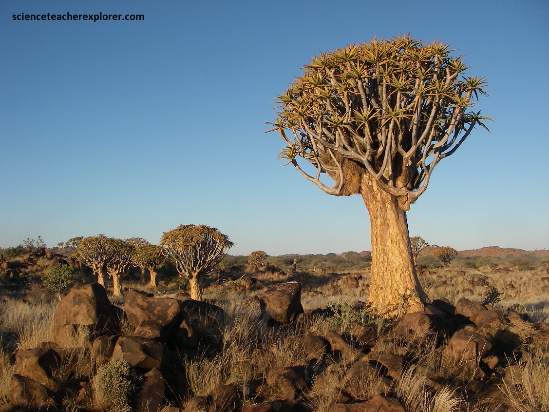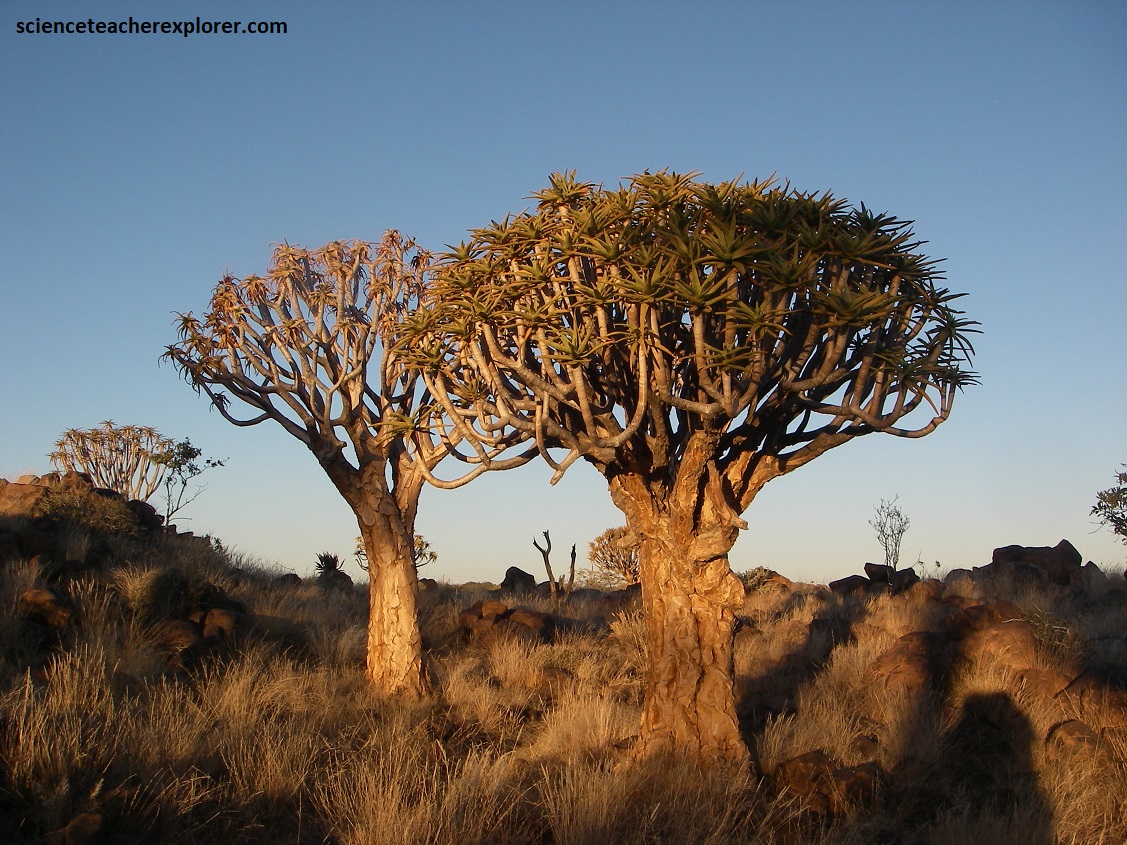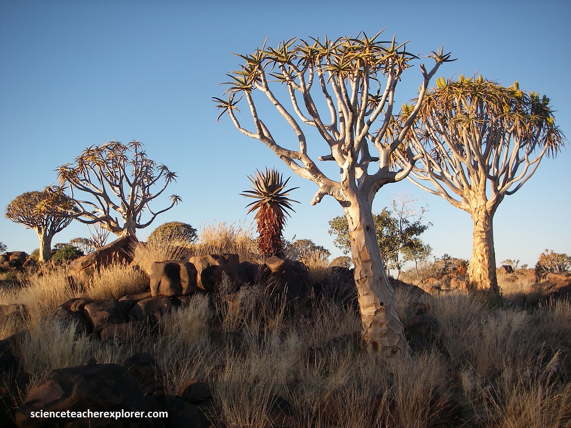The Quiver Tree Forest (Kokerboomwoud) near Keetmanshoop, Namibia, is a national monument featuring roughly 250 specimens of Aloidendron dichotomum that are 200-300 years old. Located on Gariganus Farm, this surreal, rocky landscape is a popular photography spot, famous for its unique, alien-like aloe trees that were historically used by the San people to make quivers for their arrows. We arrived at sunset, which was an ideal for photography, offering warm light on the trees, (pictured below). The trees are actually succulents rather than trees, with thick, split bark that grows up to 300 years old. They produce yellow flowers during the June that we were there.