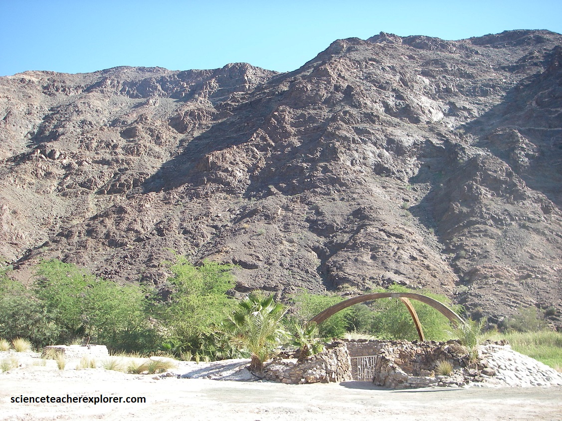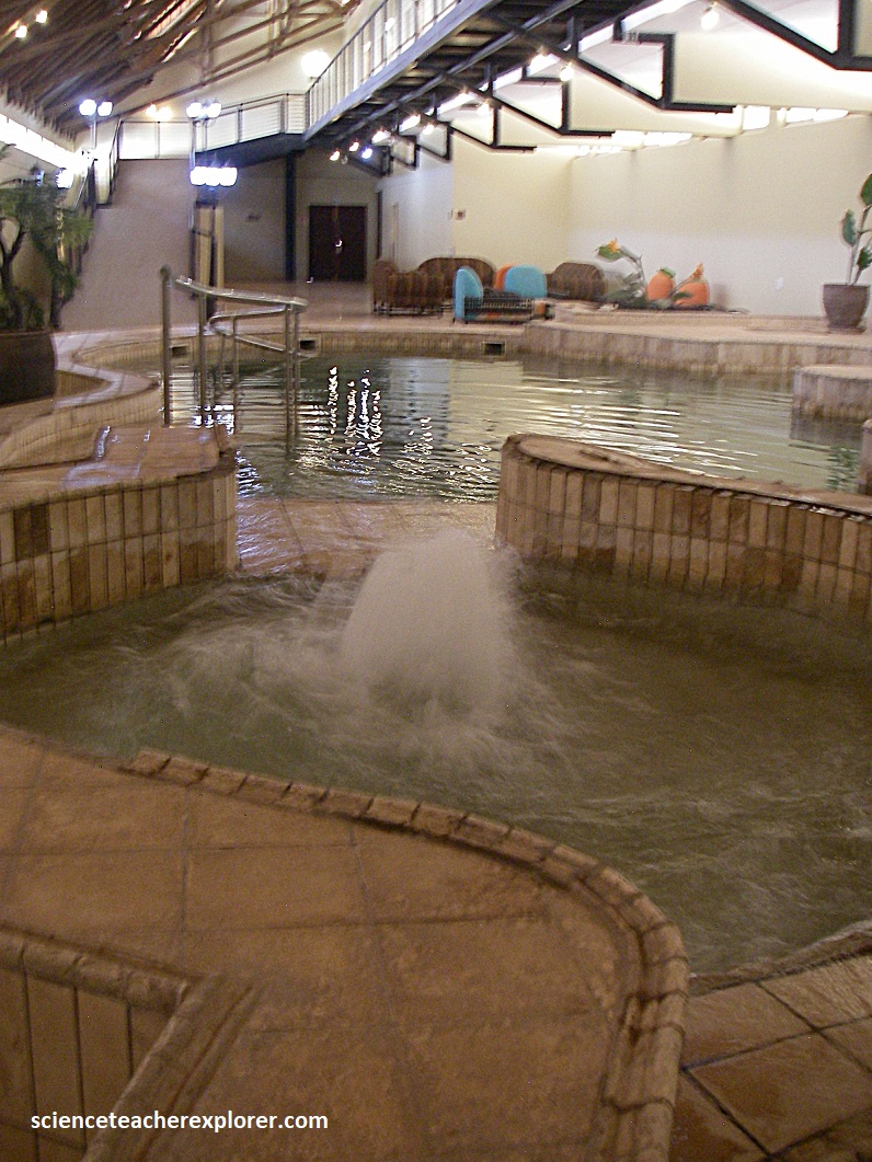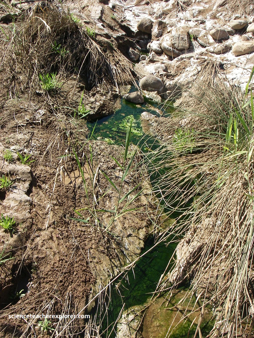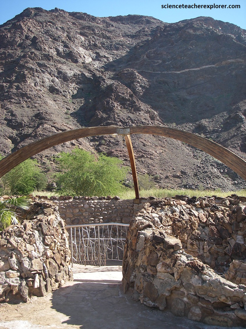The emerging water, which is of therapeutic value for those suffering from rheumatism, is rich in dissolved mineral salts such as fluorite, sulfates and chlorides. It is assumed that these salts were dissolved from the surrounding rocks, through which the groundwater passes. Pictured below, the actual spring outlet, (the Eye), can be visited close to the outdoor swimming pool. We even visited the natural hot-springs feeding the Fish River, (pictured below). {Note: My traveling buddy, (Tracy Davis), is posing next to ‘the Eye’ of the Ai-Ais hot-spring at the bottom of Fish River Canyon in Namibia 2025}.